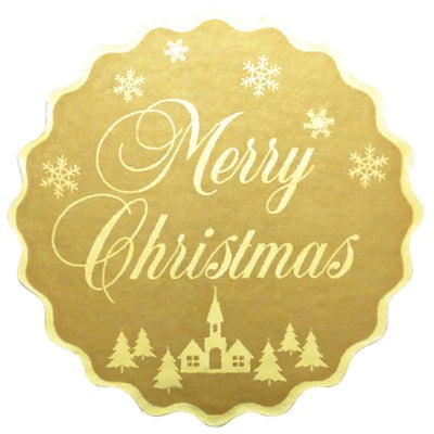 商品の特徴:巻き取りタイプのシール商品です。直径35mmサイズの丸型ギフトシールです。艶金ホイルタック紙を使用しているので高級感のあるデザインです。クリスマスの包装や封かんなどにお使いいただけます。1巻500片入です。
