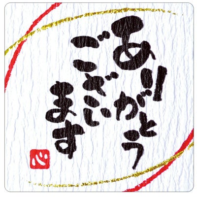 商品の特徴:手書きしたような暖かみのある「ありがとうございます」の文字と和風柄をあしらったギフトシールです。表面に凹凸があるクレープタック紙を使用しているので和紙のような質感とナチュラルさ、優美なイメージがあります。和モチーフの包装に最適で、のしを掛けられない小さなギフトにもお手軽にお使いいただけます。少量使いきりタイプのシール。1冊12片入です。