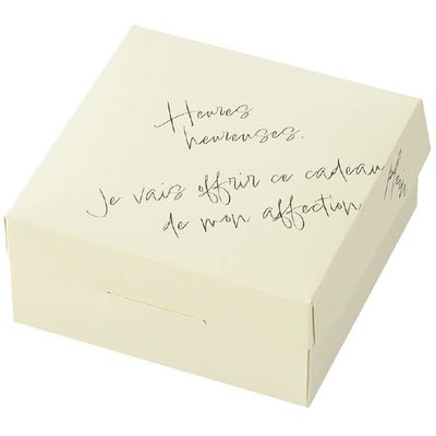 商品の特徴:直径12.5cmのガトーショコラやチーズケーキ、アップルパイ等のホールケーキに対応したケーキボックスが登場しました。フランス語のテキストデザインが入ったおしゃれなパッケージです。その他の焼菓子も入れられますのでギフトとして幅広くご使用いただけるケーキボックスです。