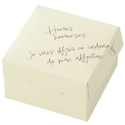 商品の特徴:直径9.5cmのガトーショコラやチーズケーキ、アップルパイ等のホールケーキに対応したケーキボックスが登場しました。フランス語のテキストデザインが入ったおしゃれなパッケージです。その他の焼菓子も入れられますのでギフトとして幅広くご使用いただけるケーキボックスです。