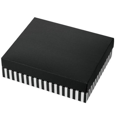 商品の特徴:シンプルな白黒ストライプのギフトボックスです。組み合わせ次第で高級感のあるギフトやカジュアルなギフトなど、幅広くお使いいただけます。身とフタに段差がないので包装しやすく、ご進物用にもオススメです。中箱は折り方によって傾斜のありなしを選べる仕様になっています。縦横どちらの向きでも使える便利な仕切りもついているので、沈みや動きを防いでお菓子の詰合せをきれいに見せることができます。