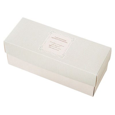 商品の特徴:素材感のある再生紙をつかったボックス。ミントグリーンのストライプが上品なギフトを演出します。