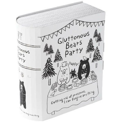 商品の特徴:ブック型ギフトボックスに、既存商品より大きめのMサイズが登場しました。グラットンベアの仲間たちが森の中でパーティーを開いているデザインで、箱のフタを開けることで物語が進んでいく絵本風のイラストが入ったギフトボックスです。同シリーズのSサイズのボックスと一緒に置くと絵本を並べているような演出ができます。素材にはFSC認証紙を使用しており、世界の森林環境保全を間接的に応援できます。