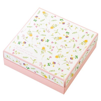 商品の特徴:えんぴつタッチのやわらかな野の花デザイン。包装しやすいようフタの段差をなくしました。また、解体しやすいようフタの内側につまみをつけています。