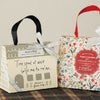 商品の特徴:大人ナチュラルなテイストが可愛い、おうちデザインのバッグ型のハンドル付きギフトボックスです。落ち着いたナチュラルな色味のお家デザインと程よいサイズ感に黒いリボンハンドルがアクセント。中身をセットするだけで手に取りたくなるプチギフトが完成します。片面を組み立ててスタッキングしておけるのもポイント。組み立てもカンタンで時間も手間もかかりません。