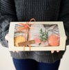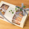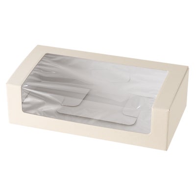 商品の特徴:フタの部分に大きな窓のついた、身ふた一体型のギフトボックスです。上からも横からもキレイに見えるように窓を配置しています。マフィンやカップケーキのセットギフトにおすすめです。