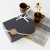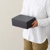 商品の特徴:ダークグレーのシンプルな無地ギフトボックスです。シックな濃いグレーは、水引や帯シールなど小物の合わせ方次第でカジュアルラッピングから高級ギフト、さらには洋風にも和風にも変身します。サイズ展開も豊富で、様々な用途や商品に対応可能。底が抜けない構造なので重いビン物やお皿など陶器の化粧箱、配送用の外箱としてもおすすめです。ワンタッチで組み立て簡単、在庫スペースにも配慮したコンパクトな納品形態など、使いやすさへのこだわりの詰まったギフトボックスです。