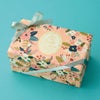 商品の特徴:全面に散りばめられた花柄が華やかな貼箱です。内側にもこだわりのデザイン入り!コンパクトでありながら、高級感のあるギフトにしていただけます。