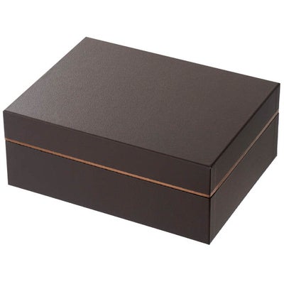 商品の特徴:2段式の貼箱です。茶色の箔のラインがアクセントになり、高級感を感じさせる貼箱なので、特にご贈答品におすすめ。大切な方へのプレゼントや、ビジネスシーンにも対応できます。 上下段で種類の違うものを組み合わせて入れるのもサプライズ感があっておすすめです。掛け紙をかけやすく、いろんなシーンに長い期間お使いいただけます。
