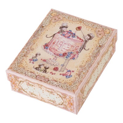 商品の特徴:イラストレーター 鹿島孝一郎さんとコラボレーションしたギフト用貼箱です。鹿島さんの繊細で可愛らしいイラストで隅々までこだわった一つのアート作品のようなギフトボックスが完成しました。ギフトと一緒に届いた気持ちとともにいつまでも残しておきたくなるギフトボックスです。