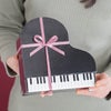 商品の特徴:グランドピアノの形をした貼箱です。内側には楽譜が箔押でデザインされています。実際のピアノのように突上棒がついており、開けた状態でのラッピングやディスプレイが可能です。発表会や音楽会にはもちろん、音楽好きな方へのギフトにいかがですか?