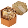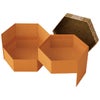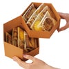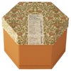 商品の特徴:アールヌーヴォー調のグラフィックを取り入れたデザインの六角型2段貼箱です。フタを取ると上段と下段が左右に展開し、中の商品を豪華に見せます。内面にもおしゃれなデザインが施され、箱を展開したときのわくわくした気分をより高めてくれます。上下段で種類の違うものを組み合わせて入れるのもサプライズ感があっておすすめです。