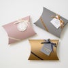 商品の特徴:グレイッシュピンクが上品で落ち着いた印象の無地のピロー型ボックスです。丸みのあるフォルムが可愛いピローボックスは、商品との隙間が少なく緩衝材を減らせるのがポイント。無地デザインなのでお店のシールを貼って店舗オリジナルのギフトボックスのようにお使いいただけます。アパレルやアクセサリー小物に対応した3サイズ展開で、通年用のギフトはもちろんシーズンやイベントギフトにもお使いいただけます。