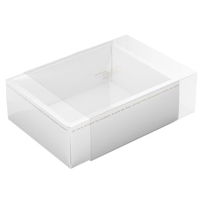 商品の特徴:透明スリーブなので贈るものによって表情が変わります。他とは違うギフトの奇麗さや清潔感をボックスで表現したい!・・・そんな時はさりげない欧文がおしゃれな白のスリーブボックスで決まり。