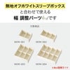 商品の特徴:無地オフホワイトスリーブボックスと合わせて使える幅調節パーツです。幅が違う瓶やボトルのセットアップギフトを作る時に、横幅のスキマを調節できるので、箱の中で動きにくくキレイにギフトを作ることができます。