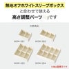 商品の特徴:無地オフホワイトスリーブボックスと合わせて使える幅調節パーツです。高さが違う瓶やボトルのセットアップギフトを作る時に縦幅のスキマを調節できるので、箱の中で動きにくくキレイにギフトを作ることができます。