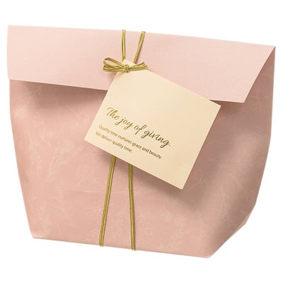 商品の特徴:スモーキーカラーのピンクにナチュラルな植物模様がデザインされた紙袋です。商品が入れやすい舟底型になっていて、付属のゴムタグを付けるだけで簡単にラッピングができます!繊細なボタニカルなデザインで雑貨・服飾だけでなく理美容品にもぴったりです。季節を問わず通年使えるナチュラルなデザインですが、タグを付け替えるとバレンタインや春ギフト・母の日などのイベント用ラッピングにもおすすめです。