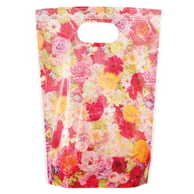 商品の特徴:きれいな花々がカーペットのように敷き詰められたデザインのスタンドバッグです。母の日だけでなく年中お使いいただけるアイテムです。