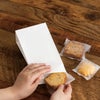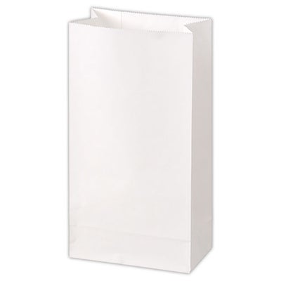 商品の特徴:晒(さらし)クラフト紙製の白の無地角底ペーパーバッグ(紙袋)です。シンプルな白無地でサイズ展開もあるので、幅広い業種の店舗様にお使いいただける角底袋です。