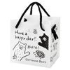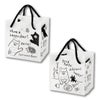 商品の特徴:白と黒のクマのゆるいイラストが可愛い、グラットンベアシリーズのハンドル付きラッピング袋(キューブバッグ)です。表・裏のイラストが異なるため、交互に置くと売場が賑やかになります。可愛いイラスト入りですがモノトーンベースでシンプルな仕上がりのため、リボンやワイヤータイなどの小物でお店のカラーを出してお使いいただけます。