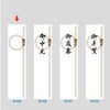 商品の特徴:貼り付け簡単、手間と面倒をスマートにスッキリと解消したワンタッチで貼れる便利な札紙(ふだがみ)です。付箋紙のように簡単に貼ることができますので作業がしやすいです。裏面上部に糊が付いています。弱粘性の糊を使用しているので、貼り跡が残らず貼り直しが可能です。表書きのない無字です。色々な祝事に使用できます。輪のしのデザインで主に関西地区で使用される柄です。サイズは240×58ミリです。100枚袋入りです。上質紙を使用しています。プリンターでの印刷には対応しておりません。
