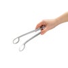商品の特徴:つかみやすくて、油切れがいい。大きな穴が開いているので、揚げ物の油切れもよく、つかみやすいです。特許取得のバネ構造と開き角度にこだわり、やわらかな使い心地を実現しました。ステンレス一体成型なので洗いやすく、清潔に使えます。先端がリング状になっていて、接地面積が少ないからポテトサラダがトングに残りません。ひっくり返すと先端が浮くので、汚さずに置けます。