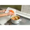 備考:小ぶりで軽く、フチがあるので、鍋に移すのも簡単でこぼしにくい。まな板の大きさに合わせたまな板シート(20×20cm)が5枚がついています。
