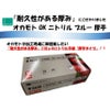 商品の特徴:ニトリル手袋粉無。ハードな作業にも耐えられる安心の厚み。指先シボ加工による滑り止め強化。