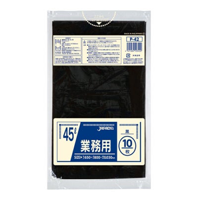 商品の特徴:45Lサイズの黒色ゴミ袋。柔軟性に優れ、伸びに強く突起物にも強い。