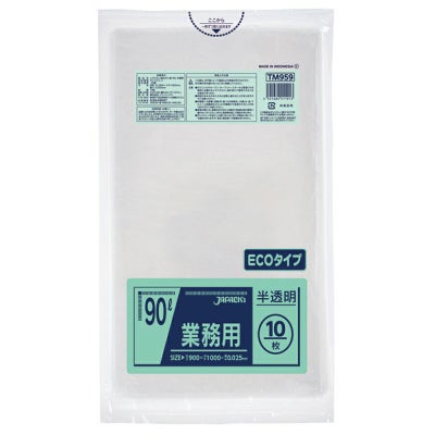 商品の特徴:90Lサイズの半透明ゴミ袋。メタロセン配合で柔軟性に優れ、伸びに強く突起物にも強い。