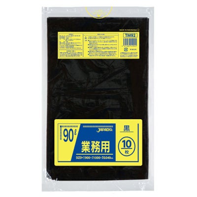 商品の特徴:90Lサイズの黒色ゴミ袋。メタロセン配合で柔軟性に優れ、伸びに強く突起物にも強い。
