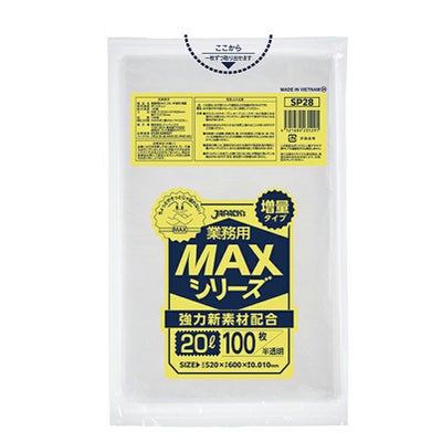 商品の特徴:20Lサイズの半透明ゴミ袋。引張りに強く、柔軟性も兼ね備えている。徳用タイプ。