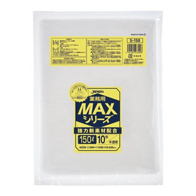 商品の特徴:150Lサイズの半透明ゴミ袋。引張りに強く、柔軟性も兼ね備えている。