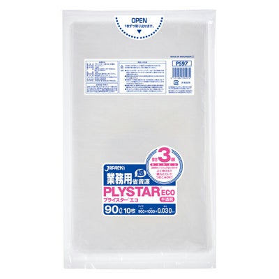 商品の特徴:90Lサイズの半透明ゴミ袋。よく伸びて破れにくい複合3層タイプ。