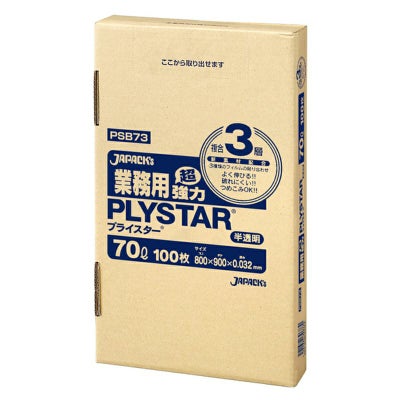 商品の特徴:70Lサイズの半透明ゴミ袋。よく伸びて破れにくい複合3層、箱入りタイプ。