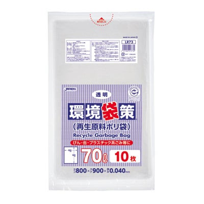 商品の特徴:環境にやさしい再生原料40%使用ポリ袋(エコマーク付き *日本製)。70Lサイズ透明。