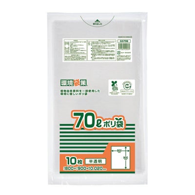 商品の特徴:環境に配慮したバイオマス25%配合ポリ袋(エコマーク付き)。70Lサイズ。
