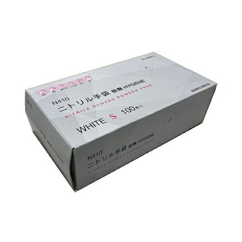 N410 ニトリル手袋 粉無 WHITE S 100入