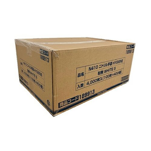 N410 ニトリル手袋 粉無 WHITE S 4000入