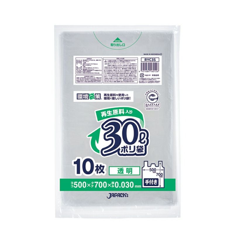 環境袋策 ポリ袋30L手付き 透明 600枚