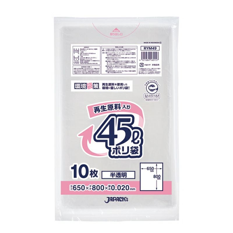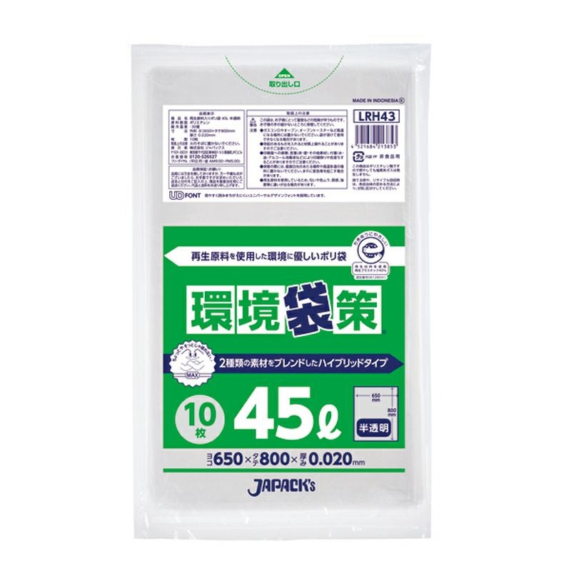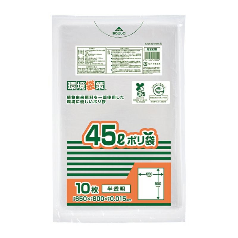 環境袋策 ポリ袋45L 半透明 600枚