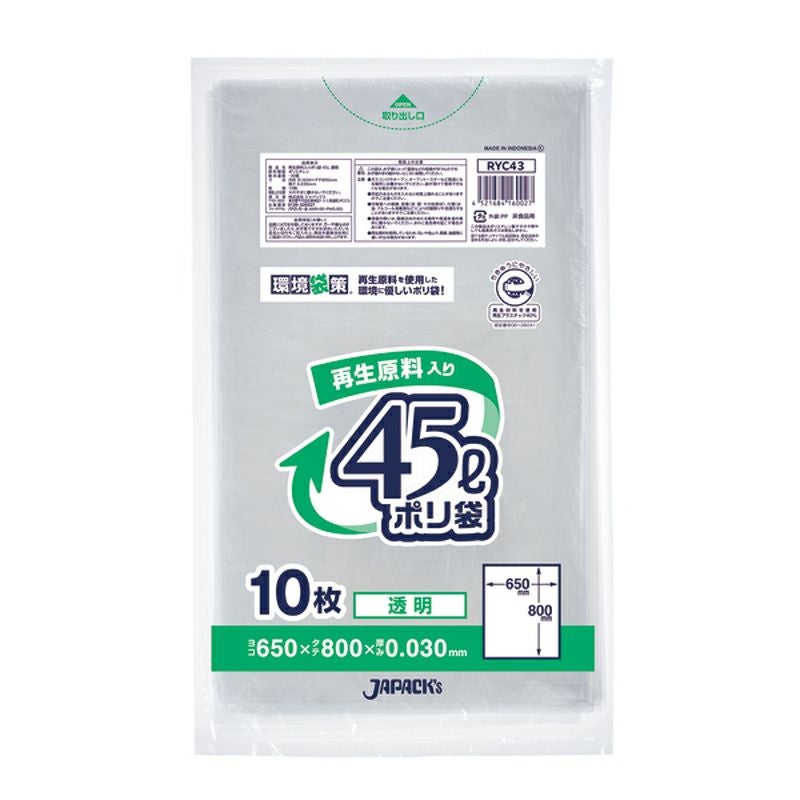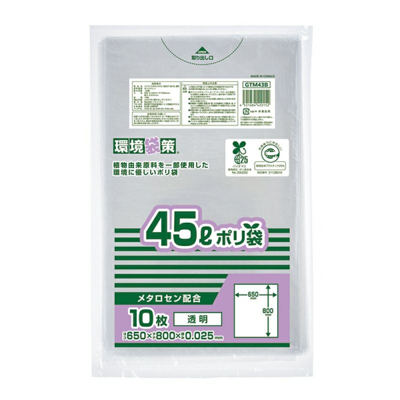 環境袋策 ポリ袋45L 透明 600枚