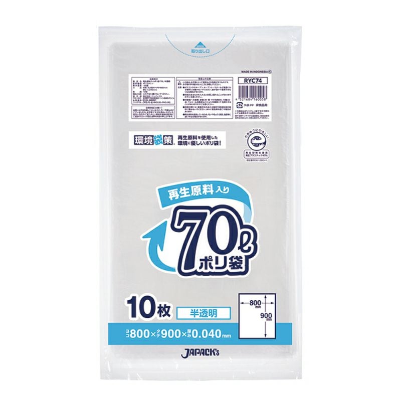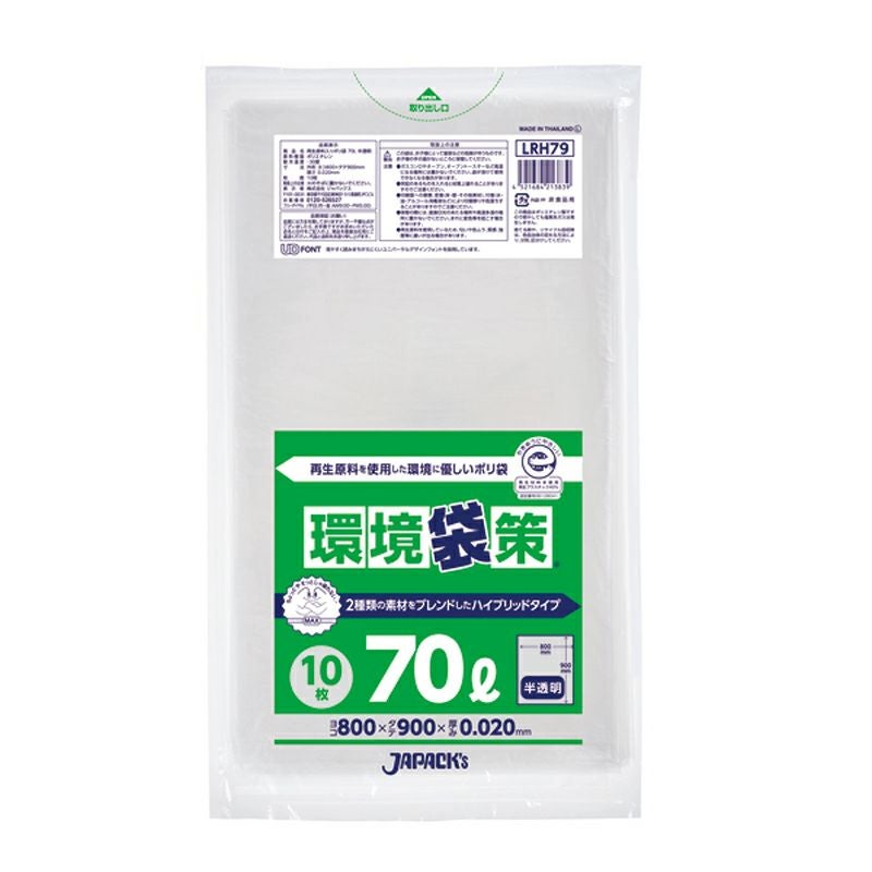 環境袋策 ポリ袋70L 半透明 500枚