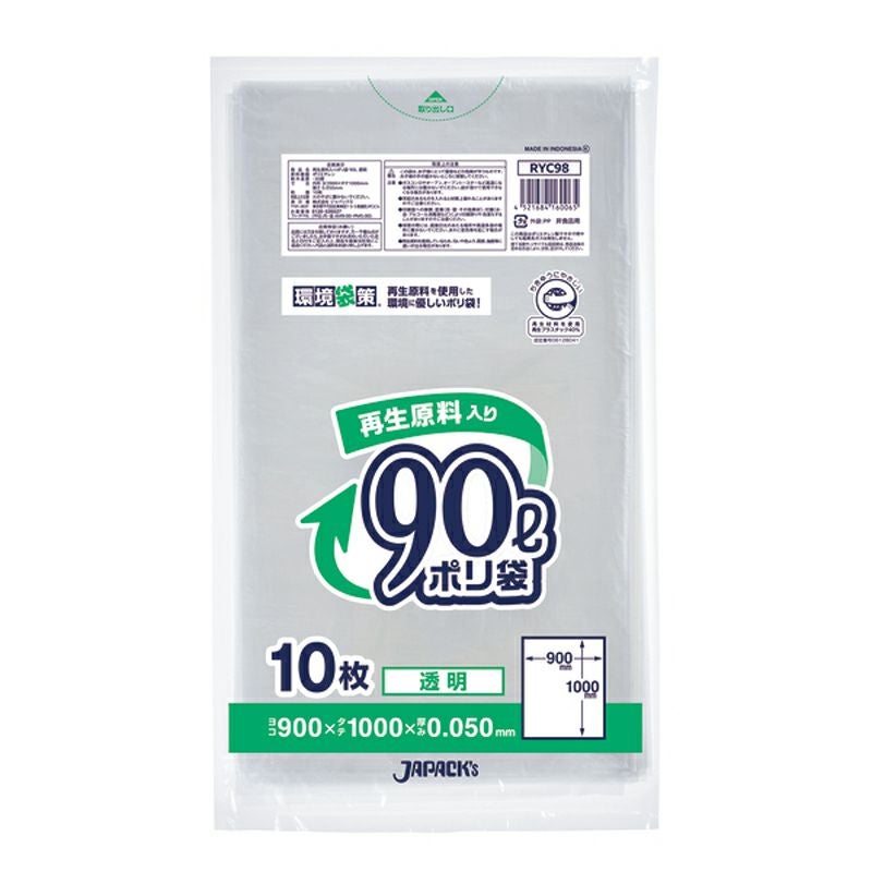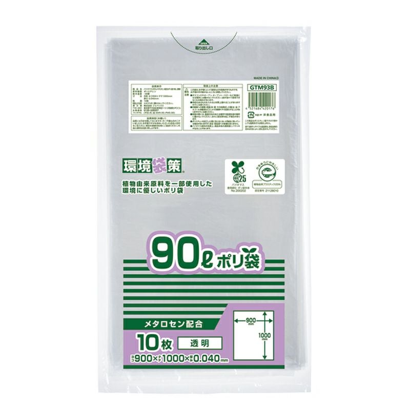環境袋策 ポリ袋90L 透明 300枚