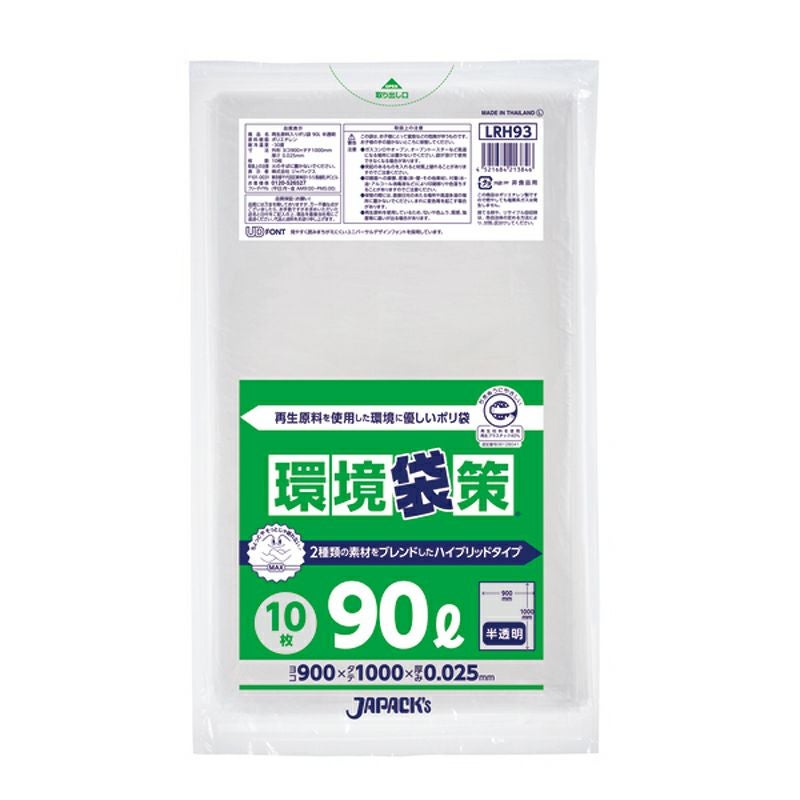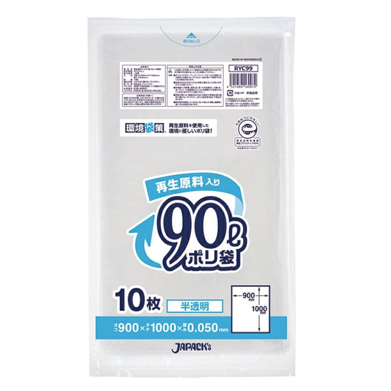 環境袋策 ポリ袋90L 半透明 300枚