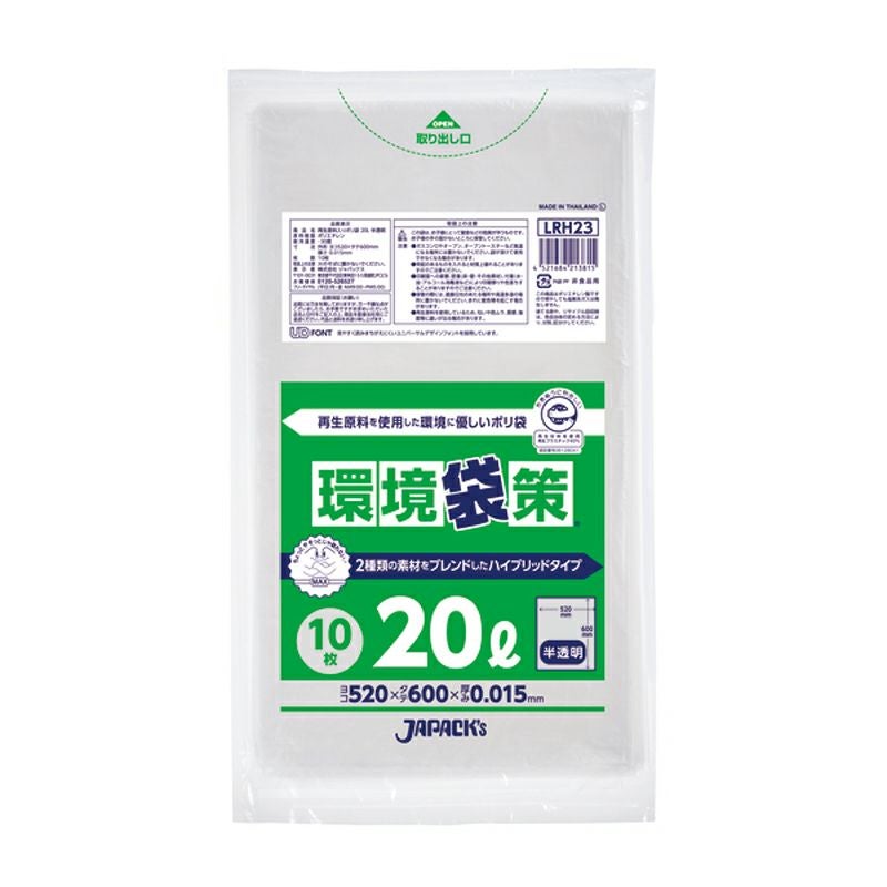 環境袋策 ポリ袋20L 半透明 600枚