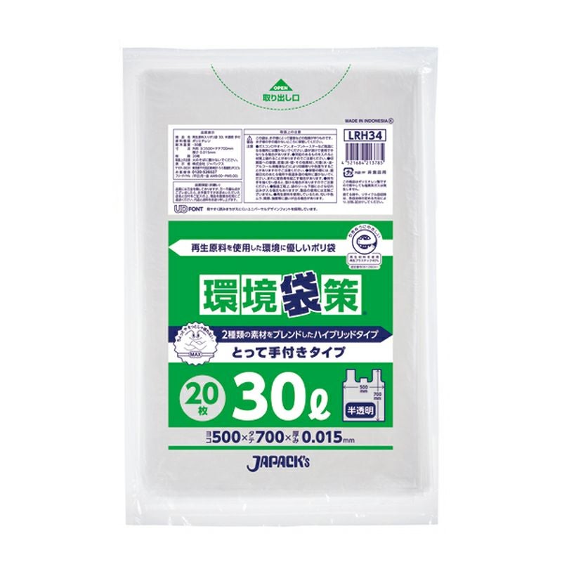 環境袋策 ポリ袋30L手付 半透明 600枚