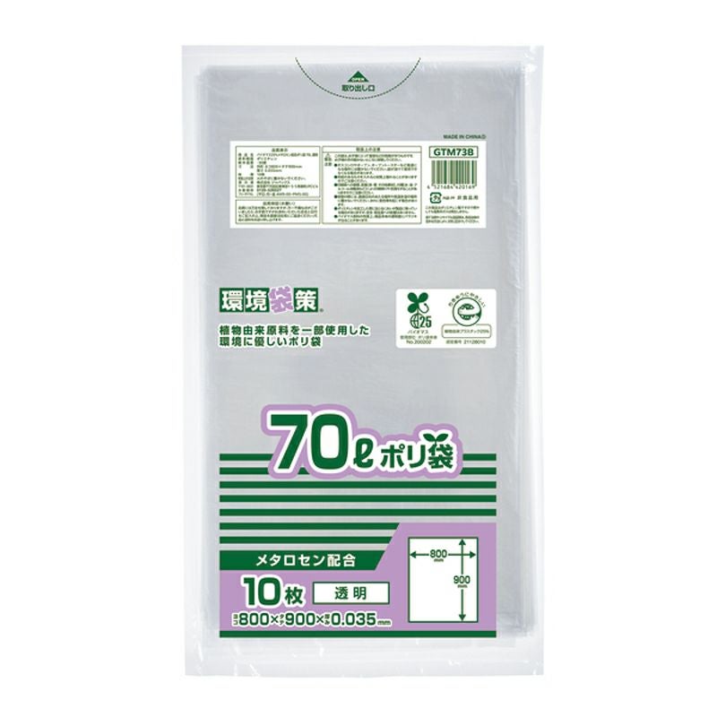 環境袋策 ポリ袋70L 透明 400枚