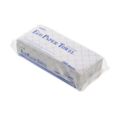 商品の特徴:再生紙を100%使用した環境に優しいペーパータオル。1パック200枚入。店舗やオフィス等の化粧室での手拭き用として最もよいサイズです。