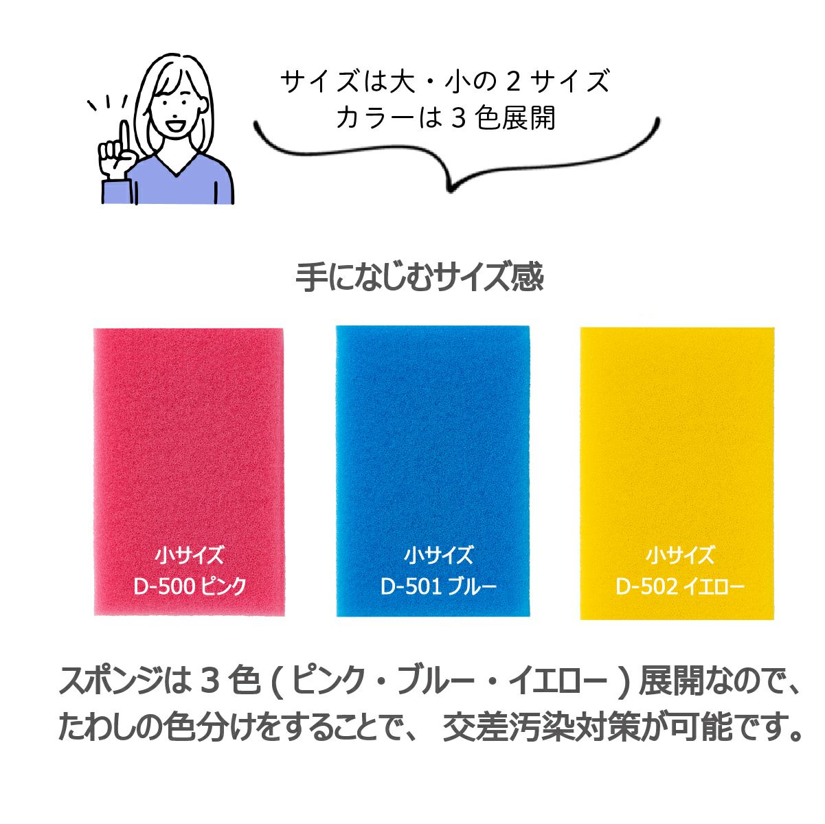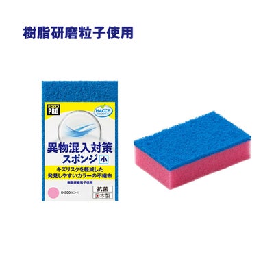 商品の特徴:樹脂研磨粒子入り不織布は耐摩耗性が高く、千切れても発見しやすいブルーなので異物混入対策に○。手になじむサイズ感。3色のカラー展開。